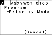 Available keys and a button under the program priority mode are Emergency stop, STOP, Cancel, MOTOR, LOCK keys, and the Cancel button on the teach pendant screen.