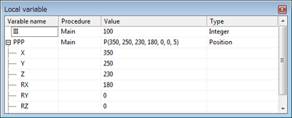 This window is to monitor and edit local variables in the selected program.