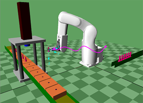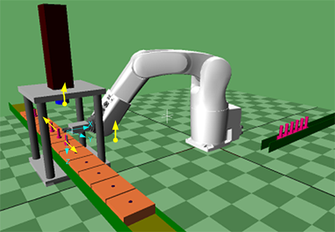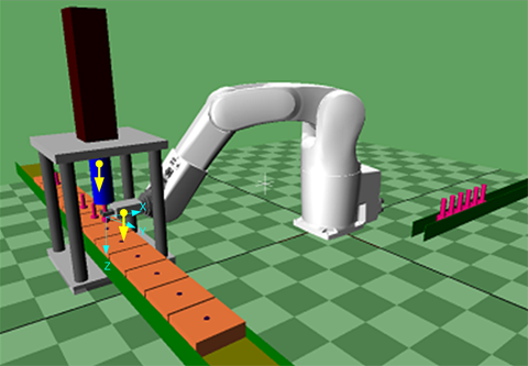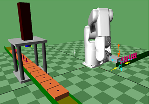 As the following figure shows, the robot holds a workpiece and then supports press-fitting process. By activating the compliance function at the press-fitting, the robot gives under the press-fitting direction.