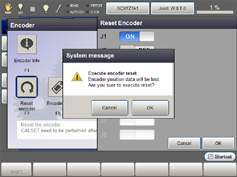 After encoder reset is complete, be sure to restart the robot controller.