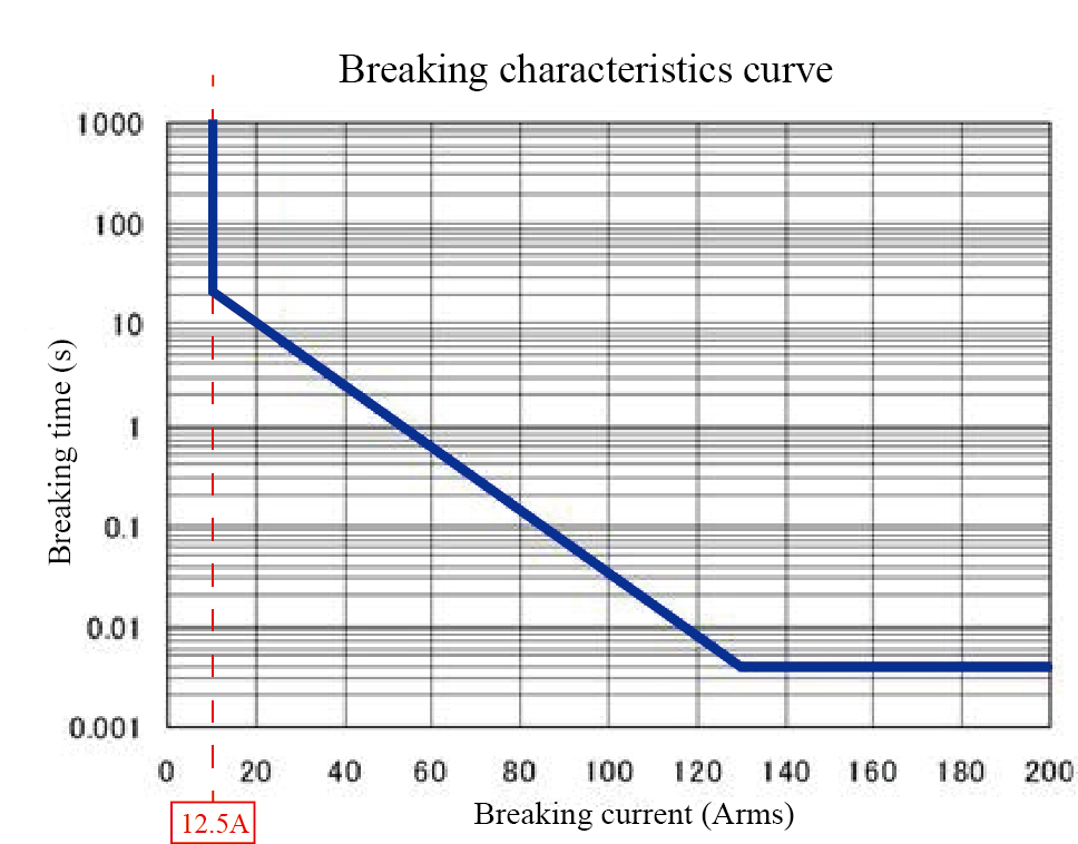 The following line graph shows a sample of the breaking capacity of a circuit breaker inserted between the robot and the AC input power supply.