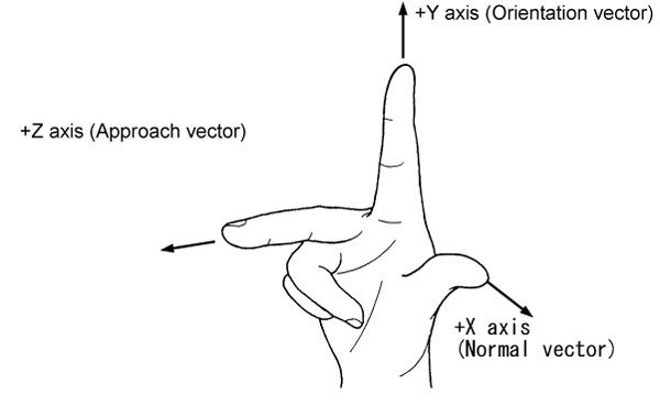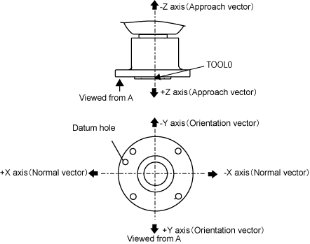The Y component is defined on the orientation vector directed from the center of the flange to the center of the datum hole. The Z component is defined on the approach vector directed from the center of the flange to the normal line of the flange center. The X component is defined on the normal vector directed along the X axis (+) in the right-hand coordinates whose Y axis is an orientation vector and whose Z axis is an approach vector.