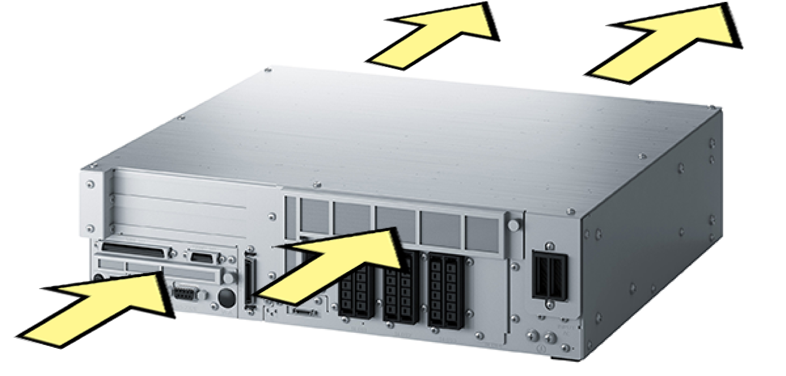 | Cooling fan in the robot controller | Hold up a hand to the exhaust port and check the wind is blowing off. | Should work properly. | Repair or replace. |