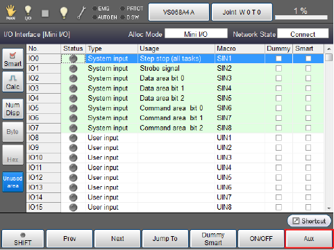 The Command-Slave function monitors commands and arguments coming from a PLC in a certain period of time. This monitoring cycle is called a polling cycle and is specified in 8ms in the factory default. This polling cycle is one of a setting parameter and you can check it with the teach pendant window.