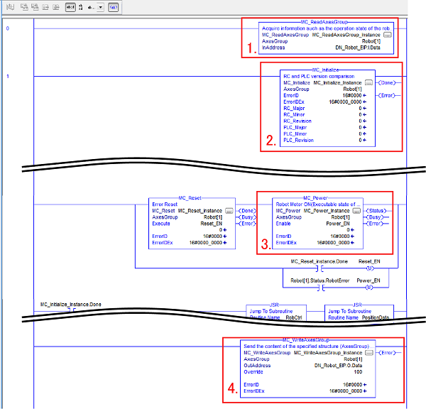 The following shows the Command-Slave function-used program structure created by "Studio 5000".