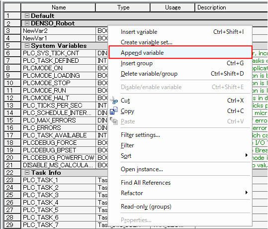 For a variable address for input, enter an address created by "I/O Setting" in DWORD type.