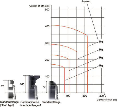 In calculation for an end-effector design, take into account not only an end-effector but also all loads to be applied to the flange such as workpieces, wiring and piping.