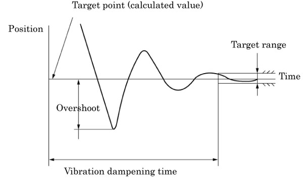 The vibration dampening time is dependent on the weight of the end-effector and others. If the robot is to be used where overshooting or vibration dampening time particularly becomes a problem, carry out an adequate test for confirmation beforehand.
