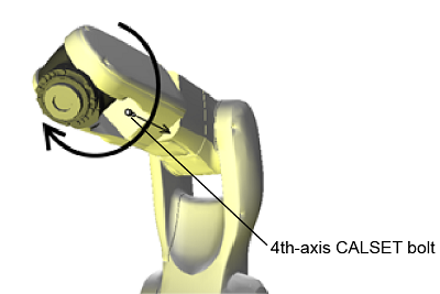 Rotate the 4th axis in the negative direction by hand and gently press it against the 4th-axis CALSET bolt for performing CALSET.