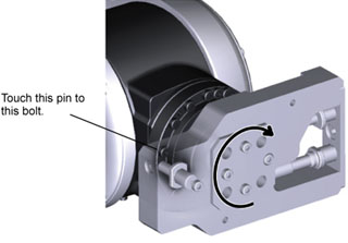 Rotate the CALSET jig clockwise, and then touch the pin to the bolt slightly.