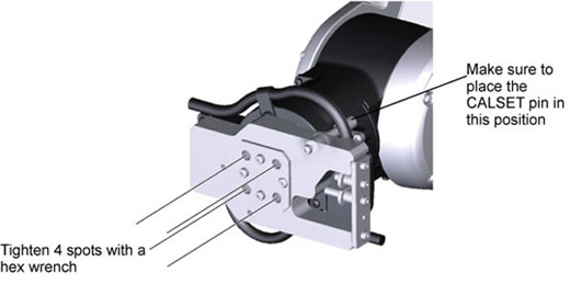 Rotate the CALSET jig clockwise, touch the CALSET pin to the CALSET bolt for communication cable flange specification for A slightly.