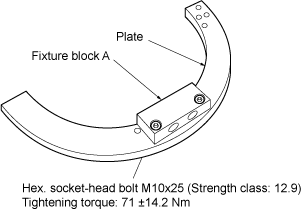 After that, firmly tighten the hexagonal socket-head bolts (on fixture blocks A) that have been temporarily tightened in Steps 4 and 5.