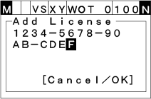 Choose "Add" with the up and down cursor keys and then press [OK]. "Add License" window appears as shown below.
