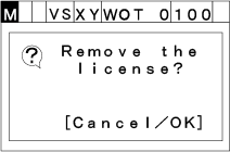 Choose "Remove" with the up and down cursor keys and then press [OK]."License delete confirmation" window appears as shown below.