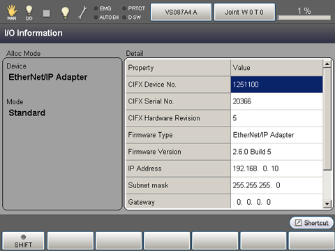 Press [F1 I/O Information] to display the following [I/O Information] window.