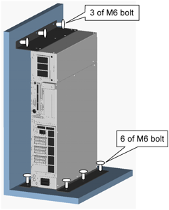 Fix the controller to the facilities' floor with 6 pieces of M6 bolts, and to the wall with 3 pieces of M6 bolts.