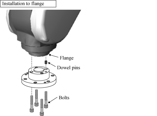 For positions and dimensions for screw holes on the flange surface and holes of dowel pins, they are written in the dimensional outline drawing of the robot to be used.
