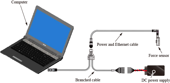 Confirm that the computer and the force sensor are connected through Ethernet cable.