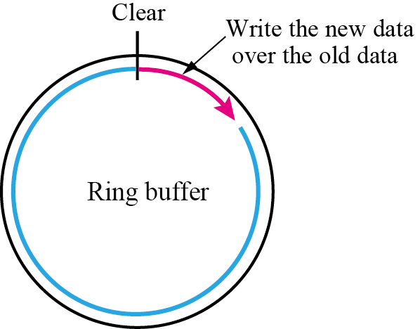 Note that the CLEARLOG starts the data logging only, and does not mean the start of the log data you can obtain. The range of log data you can obtain from the ring buffer is explained below.