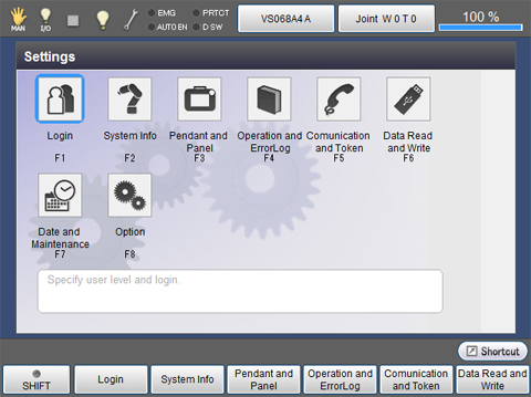 Press up and down cursor keys on the teach pendant to move the cursor keys on the screen up and down, and check the log history.