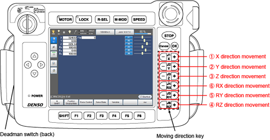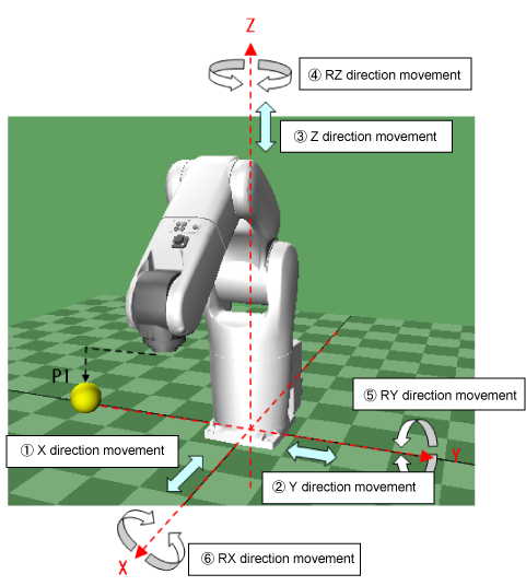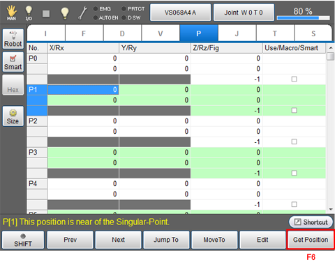Press moving direction keys as required while pressing the deadman switch to move robot to the position to be set as P1.