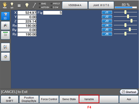 For information about how to move to the specified positions, refer to "Move to the Position Specified by Variable (only for J type, T type, and P type)" of TEACH PENDANT OPERATION GUIDE.