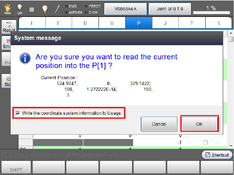 - When a controller is rebooted, the check box of "Write the coordinate system information to Usage" remains selected. (Ver.1.13.* or higher)