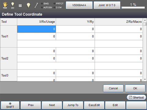 | [F4 Easy Edit] | Tool coordinates can be set by teaching several points with robot. |