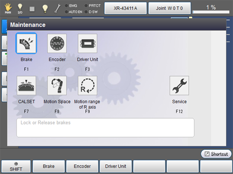Display the menu associated with settings required to move robot and maintenance of the robot.