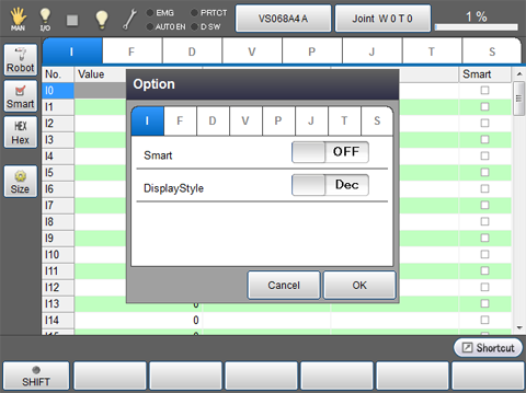 | [Smart] | In each variable, display only variable number whose checkbox for "Smart" is checked. |