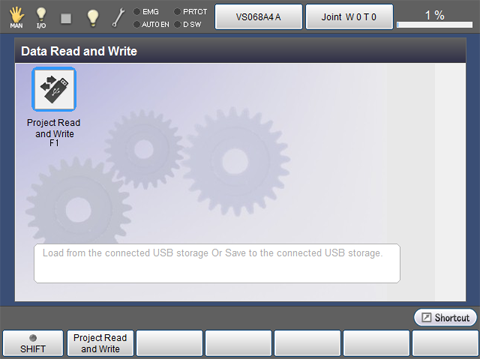 | [F1 Project Read and Write] | Read project data from USB, or write it to USB. |