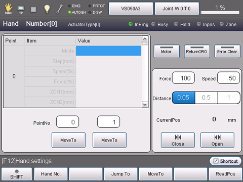 Press [F2 Parameter] to display the screen below. Select the electric gripper number to be activated. For setting, you must start from the smallest electric gripper number.