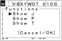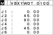 On the current robot position window, the expression of the current robot position can be changed between J type, P type and T type by using the right and left cursor keys.