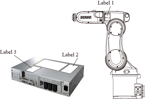 The robot unit and controller have warning labels. These labels alert the user to the danger of the areas on which they are pasted. Be sure to observe the instructions printed on those labels.