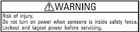 Risk of injury. Be sure to perform lockout/tagout before starting servicing. Turning the power ON when a person is inside the safety fence may move the arm, causing injuries. |