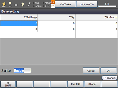 There are two ways to specify a base coordinate on the world coordinate system; "Enter immediate values" and "Easy Edit window".