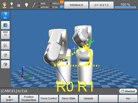 Operate two robots with the cooperative motion in manual mode.