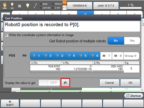 Select a variable number you want to store the position of the leader robot, and then press [F6: GetPosition].