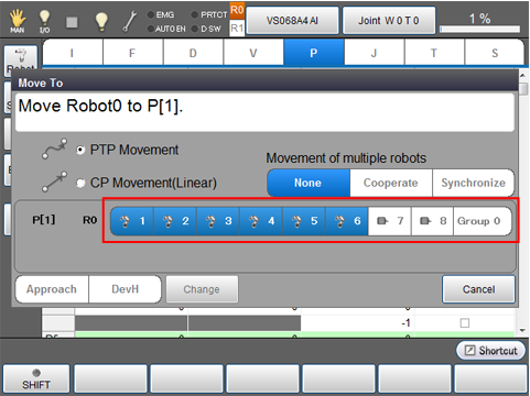 Select robot axis or extended-joint that you want to move.