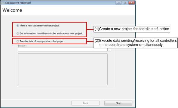 | Operation path : Start Menu -[DENSO ROBOTICS] - [WINCAPSIII]-[TOOLS]- Cooperative control Dual arm tool |