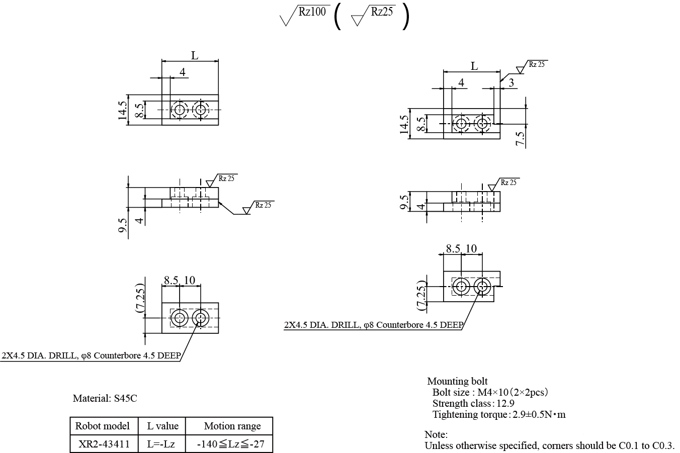 Drawings of the 3rd axis (Z-axis) Mechanical Stopper for Negative Direction (XR2)