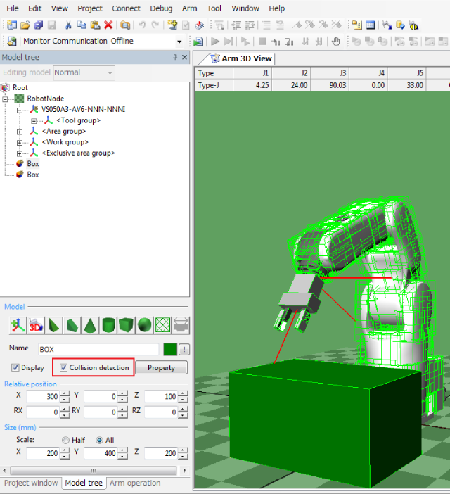 For information on how to connect, please refer to "Link with Robot Controller" in "WINCAPSIII GUIDE". - When you select the check box of "Arm model", you can send the creation source model data of virtual fence / exclusive control data to the controller. However, if the storage area is insufficient in the controller, the item "Arm model" will not be displayed.