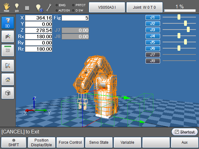 Once it turns to enable, the change of base coordinates can be reflected to the arm 3D view.