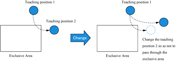Reduce the exclusive area so that the robot does not pass through the exclusive area during robot operation.