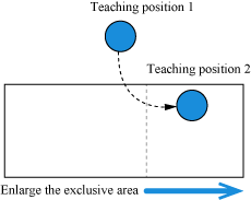 Enlarge the exclusive area so that the teaching position at standby is also within the exclusive area.
