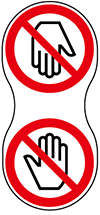 This label does not prohibit users from touching the external cable unit. It simply prohibits users from applying strong force on the unit. Therefore, you may touch the unit when you lay cables or pipes on it. |