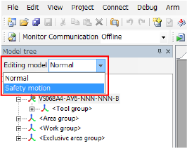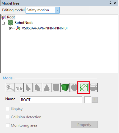 The robot type (VS, HS, etc.) of the monitoring target robot will be the one that has been specified at the creation of the project. A robot model is automatically created. - Tool