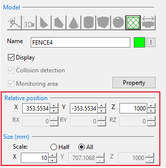 For the position and size of the fence, you can change by [Relative position] and [Size(mm)].