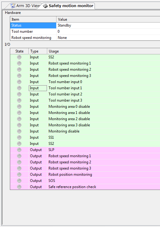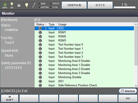 Operation path : [F2 Arm] - [F12 Maintenance] - [F5 Safety Motion] - [F1 Monitor]
