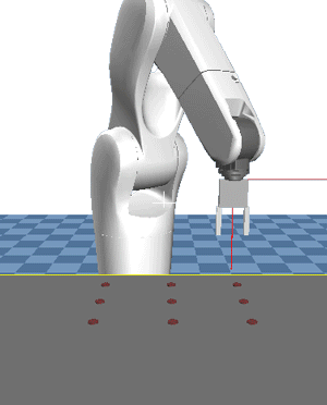 In the following movies, a robot moves to positions specified by return values of Pallet.CalcPosTurning command, and then sphere-shaped objects appear at those positions.